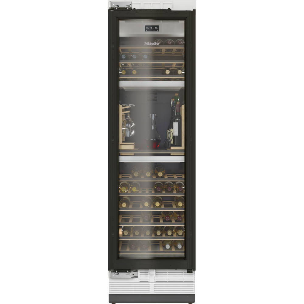 Miele MasterCool Weinschränke mit Push2open öffnen sich wie von selbst. Durch einen leichten Druck auf die Tür wird die Öffnungsautomatik aktiviert. Die Tür fährt sanft auf, sodass Sie bequem dahintergreifen und sie komplett öffnen können. Miele MasterCool Weinschränke mit Push2open kommen ganz ohne Griff aus und lassen sich so optimal und flächenbündig in jedes Küchen- und Wohnumfeld integrieren.