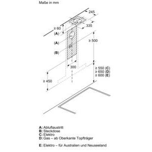 • Gerätemaße Abluft (HxBxT): 614-954 x 898 x 500 mm