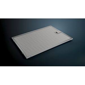 Edelstahlfarbene Dunstabzugshaube von Siemens, schräg nach unten geneigt, mit Bedienfeld und Metallfettfilter.