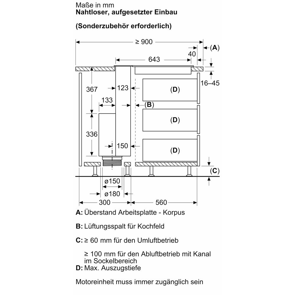 • Zum Einbau als Seamless Kombination ist ein Sonderzubehör erforderlich.