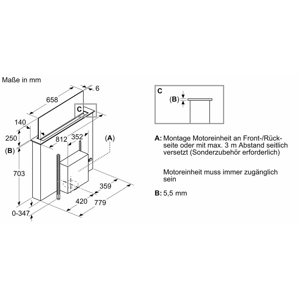 • Maße und Einbauhinweise zu diesem Gerät gemäß technischer Zeichnung beachten