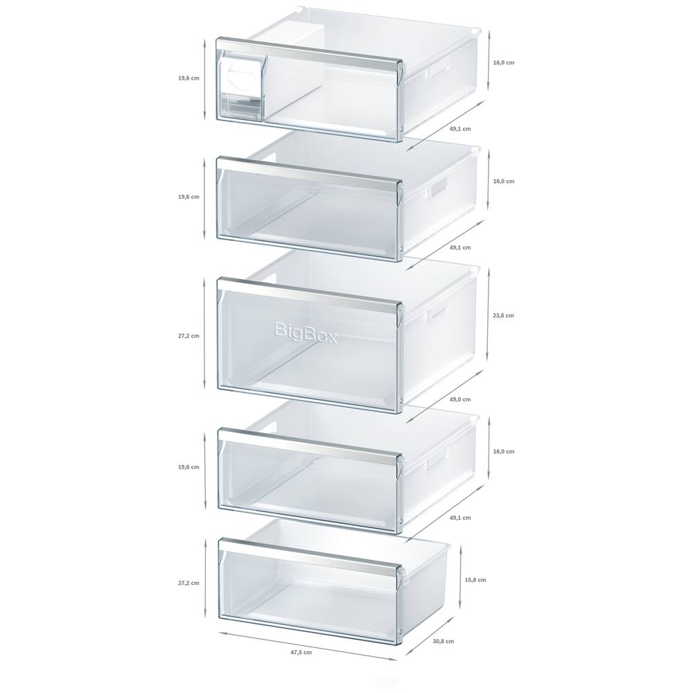 - 5transparente Gefriergut-Schubladen, davon