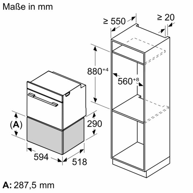• Nischenmaße (HxBxT): 290 mm x 560 mm - 568 mm x 550 mm