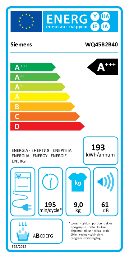 Energieeffizienzklasse ... auf einer Skala von A (sehr effizient) bis G (weniger effizient)