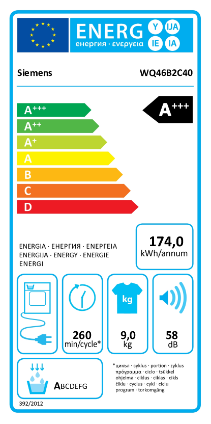 Gewichteter Energieverbrauch pro Trocknungszyklus0.95 kWh