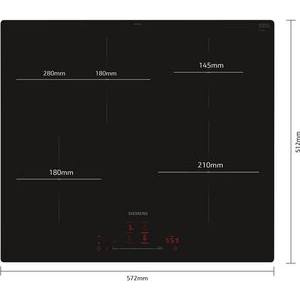 - Kochzone hinten links: 280 mm, 180 mm, 2 kW (maximale Leistung 3.1 kW)