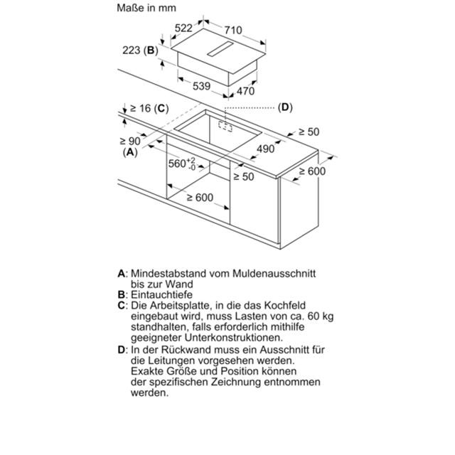 • Erforderliche Nischengröße (HxBxT mm): 223 x 560 x (490 - 490)