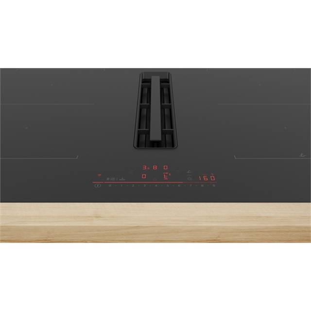 - Induktionskochfeld mit vollintegriertem, leistungsstarkem Downdraft-Abzugsmodul.