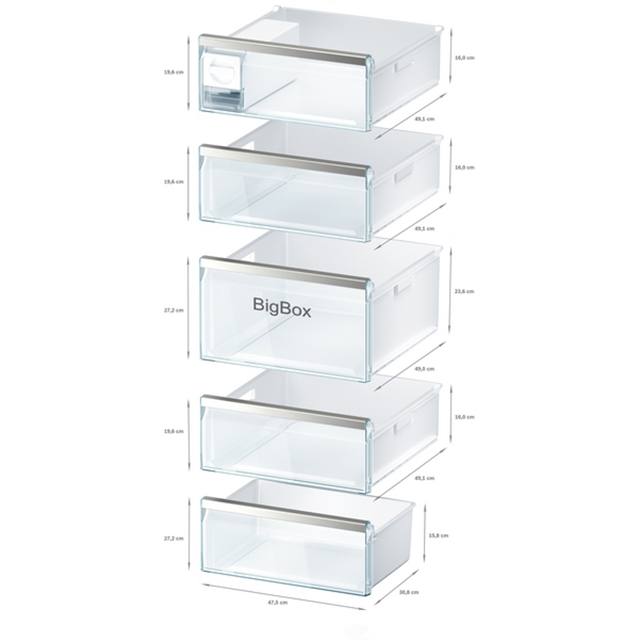• Big-Box-Schublade: zum Stapeln von Vorratsbehältern oder für großes Gefriergut.
