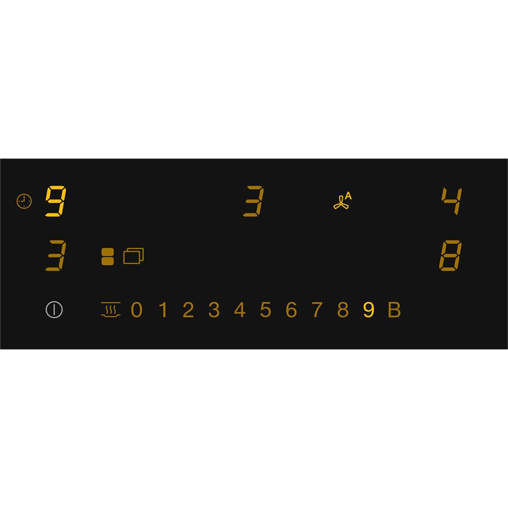 - Kompakt und komfortabel: Alle Kochzonen sowie den Lüfter steuern Sie übersichtlich über eine zentrale Zahlenreihe.