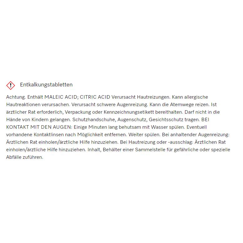 Produktbezeichnung: GP DC CX 0061 T - Entkalkungstabletten, 6 StückEntkalkungstabletten, 6 Stück für Kaffeevollautomat, Dampfgarer, FashionMaster, Backofen/Herd mit Klimagaren.PDF: Datenblatt.pdfPreis inkl. gesetzl. MwSt., ggf. zzgl. VersandkostenArtikel-Merkmale:Gründliche Entfernung von Ablagerungen und VerkalkungenHöchst effektive und dabei materialschonende EntkalkungAbgestimmte Formulierung — Spezielle Miele RezepturKeine Rückstände von Chemie nach EntkalkungBeste Pflege für viele Jahre VerlässlichkeitMenge in STCK -+In den Warenkorb×In den WarenkorbLaden, bitte warten...Das Modal wurde geladenFehler beim Laden des Modals!Bitte warten...Unsere Vor-Ort-Services für Ihre Lieferadresse aktivieren: Wenn Ihre Lieferadresse in unserer Serviceregion liegt, stehen Ihnen unsere Vor-Ort-Leistungen durch unser eigenes Fachpersonal am Verwendungsort zur Verfügung. Durch Eingabe Ihrer PLZ können Sie diese Service Verfügbarkeit für Ihre Lieferadresse prüfen.Postleitzahl eingeben:Serviceregion prüfenSie befinden sich in der Serviceregion!Sie befinden sich außerhalb der Serviceregion!Bitte beachten Sie, dass, wenn Sie bereits einen Artikel im Warenkorb haben, dieser Ihre Lieferoptionen beeinflussen könnte.Der Artikel wird in den Warenkorb gelegt...Möchten Sie den Artikel in den Warenkorb legen und weiter einkaufen oder direkt in den Warenkorb gehen?MerkenVergleichenProduktanfrageHaben Sie Fragen zu diesem Produkt?Frage stellenSie haben noch Fragen oder wünschen eine persönliche Beratung vor Ort?Wir von electroplus küchenplus Malz helfen Ihnen gerne weiter!Jetzt Kontakt aufnehmenExklusiv bei uns: 3 Jahre Garantie auf Ihr neues HausgerätAutomatisch und ohne Aufpreis. Online und in unseren 6 Filialen in OWL.Zur 3-Jahres-GarantieHighlightsProduktsteckbriefTechn. DatenServiceleistungHighlightsMiele ReinigungsprodukteImmer perfekte ErgebnisseDie speziell für Miele Geräte entwickelten Produkte garantieren hygienisch einwandfreie Ergebnisse. Mögliche Ablagerungen werden restlos entfernt. So bleibt die Leistungsfähigkeit Ihres Gerätes erhalten.ProduktsteckbriefImmer perfekte ErgebnisseDie eigens auf die Miele Geräte abgestimmten Rezepturen stehen für zuverlässig perfekte Ergebnisse.Techn. DatenMengenpreis_Ers_Preiseinheit1 Mengenpreis_Umrechnungsfaktor6 MarkennameMiele Werks-Nr.10178330 ServiceleistungService, den wir Ihnen gerne bieten.Als Fachhändler endet unsere Leistung nicht mit dem Bezahlen - wir lassen Sie auch beim Onlineeinkauf nicht im Stich. Denn wir montieren und installieren Ihre Großgeräte auf Wunsch und erklären Ihnen dann ausführlich, wie Sie diese jetzt optimal nutzen können. So können Sie an Ihrer Neuanschaffung schon nach kurzer Zeit Freude haben.Diesen Service bieten wir Ihnen in einem Umkreis von 20 km rund um 33739 Bielefeld. Die Preise für Montagearbeiten berechen sich nach Aufwand - hier erstellen wir Ihnen gern auf Wunsch ein individuelles Angebot.Für eine Vielzahl von Service- und Montageleistungen bieten wir Ihnen, abhängig vom Gerätetyp, vorkalkulierte Preise, die Sie sich schon bei der Onlinebestellung sichern können. Diese Leistungen finden Sie in unserem Onlineshop direkt am Gerät.Beratung und Kundenservice rund um Hausgeräte und Elektrogeräte.Guter Service ist bei electroplus küchenplus Malz eine Selbstverständlichkeit. Bei uns stehen Sie und Ihre Bedürfnisse im Vordergrund. Wir nehmen uns die Zeit, um Ihre Fragen zu beantworten und Sie passend zu beraten: wir sind für Sie da, wenn Sie uns brauchen. Vom ersten Beratungsgespräch bis zur Reparatur – ein Anruf oder eine E-Mail genügen und einer unserer Spezialisten steht Ihnen helfend zur Seite.Serviceleistungen ansehenFachberatung in der AusstellungLieferung und MontageReparaturservice und KundendienstAltgeräte-Mitnahme und -EntsorgungIn den Warenkorb×Frage zum Artikel:MIELE - GP DC CX 0061 TArt der KontaktaufnahmeTelefonMailNameVornameStraßePLZOrt*E-Mail*TelefonMIELE - GP DC CX 0061 TAnfrageIch habe die Datenschutzbestimmungen zur Kenntnis genommen* Wir erheben, verarbeiten und nutzen die von Ihnen angegebenen personenbezogenen Daten nur zum Zwecke der Abwicklung der Kontaktanfrage.Captcha**PflichtfelderSenden19,95 EUR
