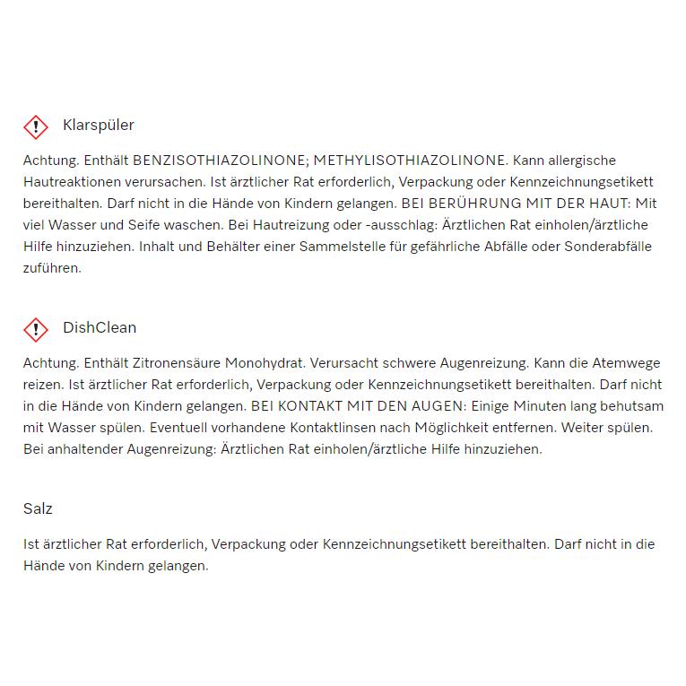 • Bestehend aus 500 ml Klarspüler, 1 DishClean und 2x 1,5 kg Salz
