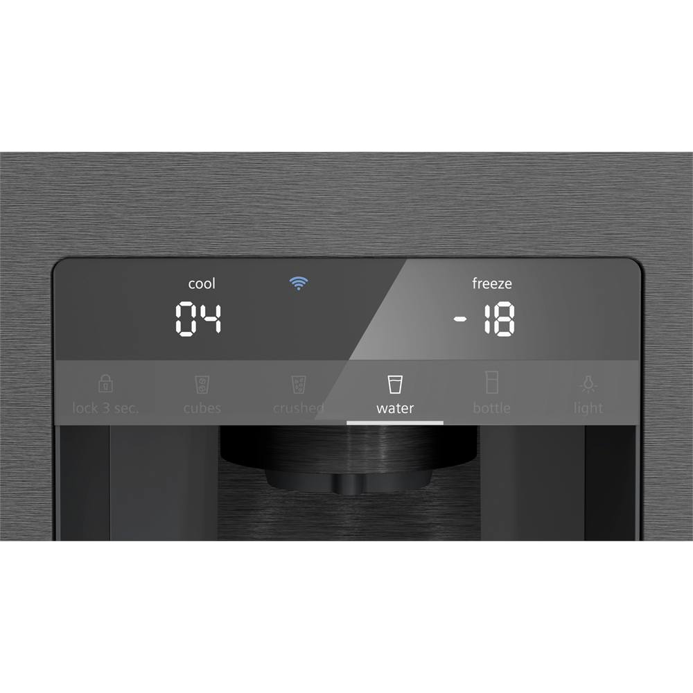 French-Door Kühl-Gefrierkombination: wo Frische auf intelligentes Design trifft. Länger frisch mit hyperFresh XXL <0°C>, nie wieder abtauen dank Total noFrost sowie gefiltertes Wasser und Eiswürfel auf Knopfdruck.