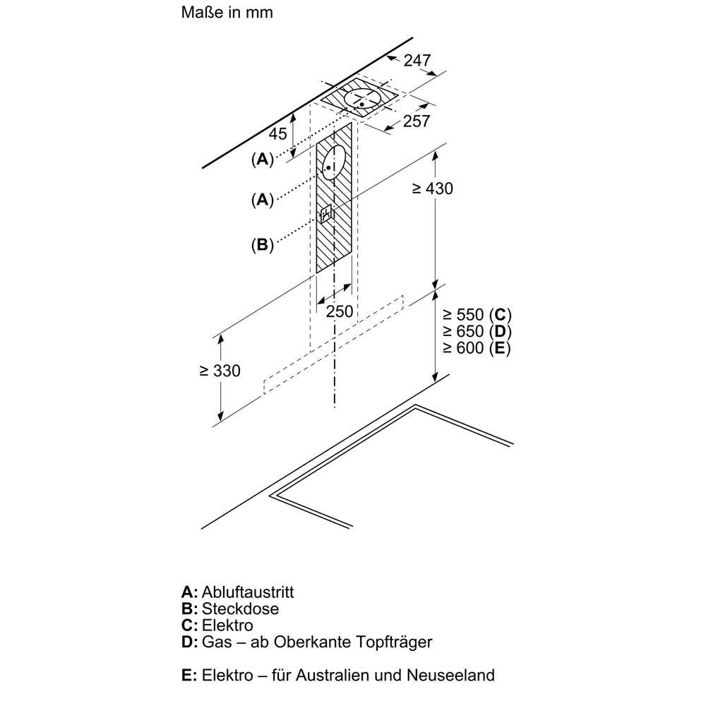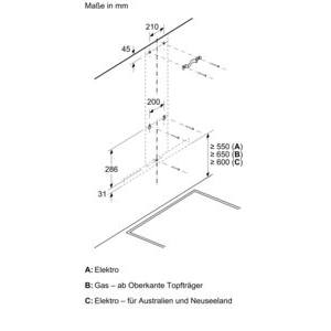 • Für Wandmontage über Kochstellen