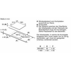 - Erforderliche Nischenmaße (HxBxT mm): 55 x 560 x (490 - 500)