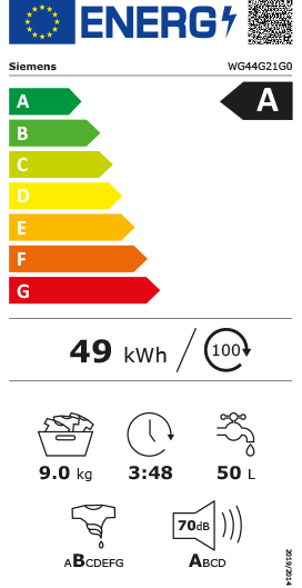 Waschautomat, 9kg, EEK2019:A, Frontlader, 1400Upm, mit Display, Wassersicherheitssystem, 598x590mm,